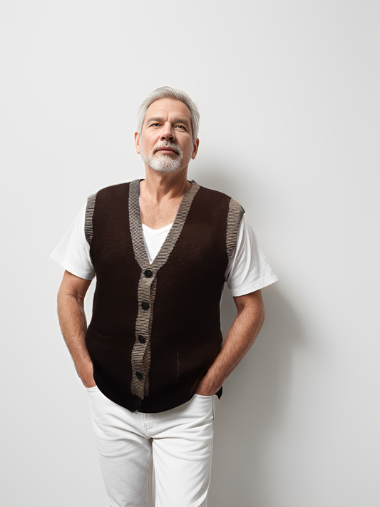 Alpaca Vest Men Jacquard Pattern with Two Pockets in Brown