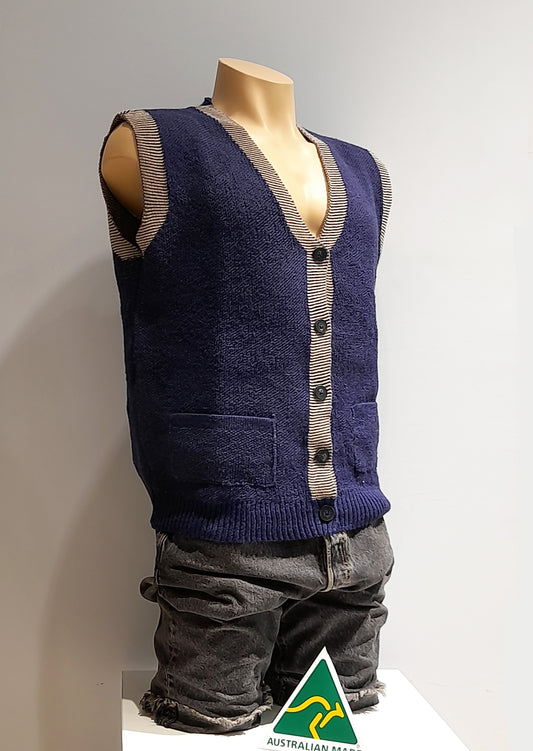 Alpaca Vest Men Jacquard Pattern with Two Pockets in Blue