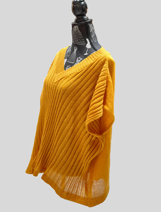 Alpaca Mustard Sun Poncho Ribbed pattern