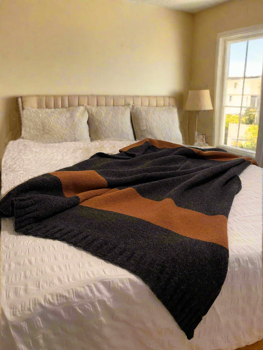 Luxury Mohair Alpaca Extra Soft Throw Blanket Charcoal-Camel