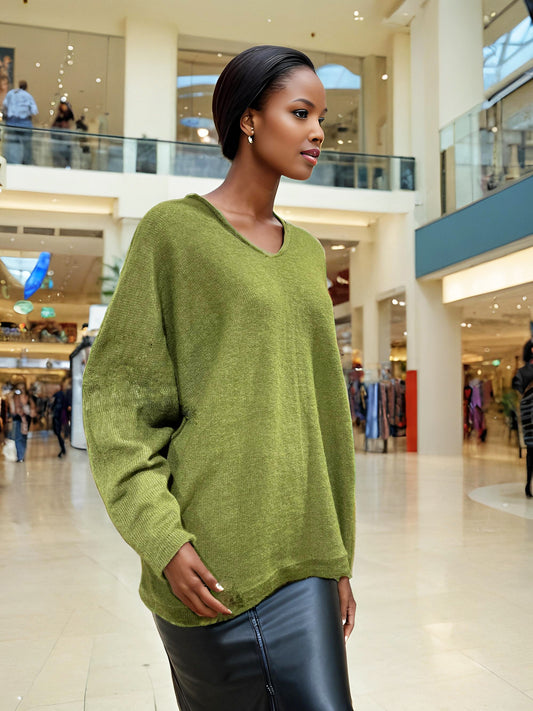 Alpaca Mohair Pullover Sweater Plus Size Green