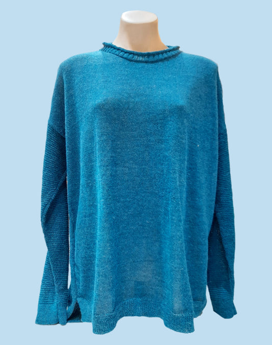 Alpaca Basic Solid Shoulder Sweater Oversized Turquoise
