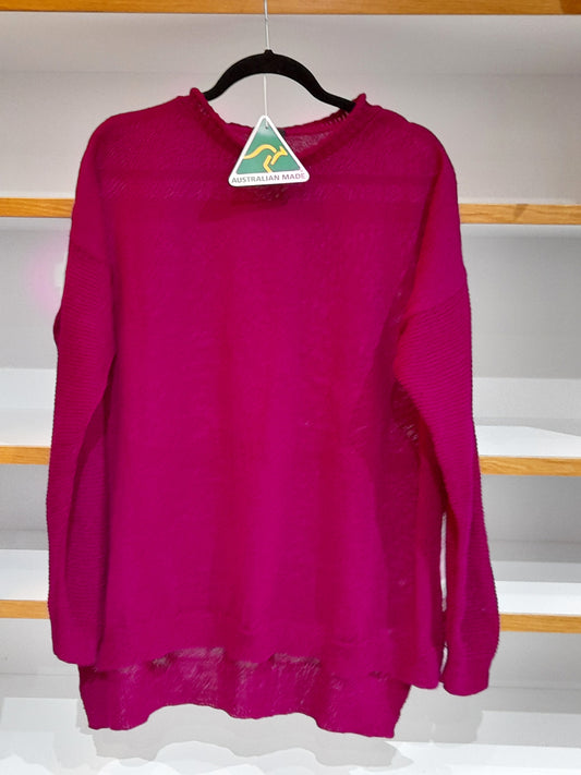 Alpaca Basic Solid Shoulder Sweater Oversized Fuchsia
