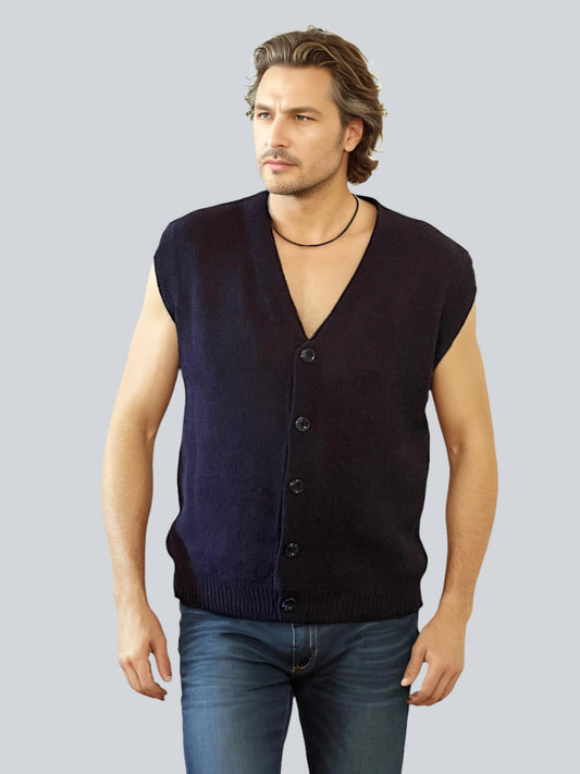 Alpaca Cardigan High Relief Jacquard Men Navy Blue