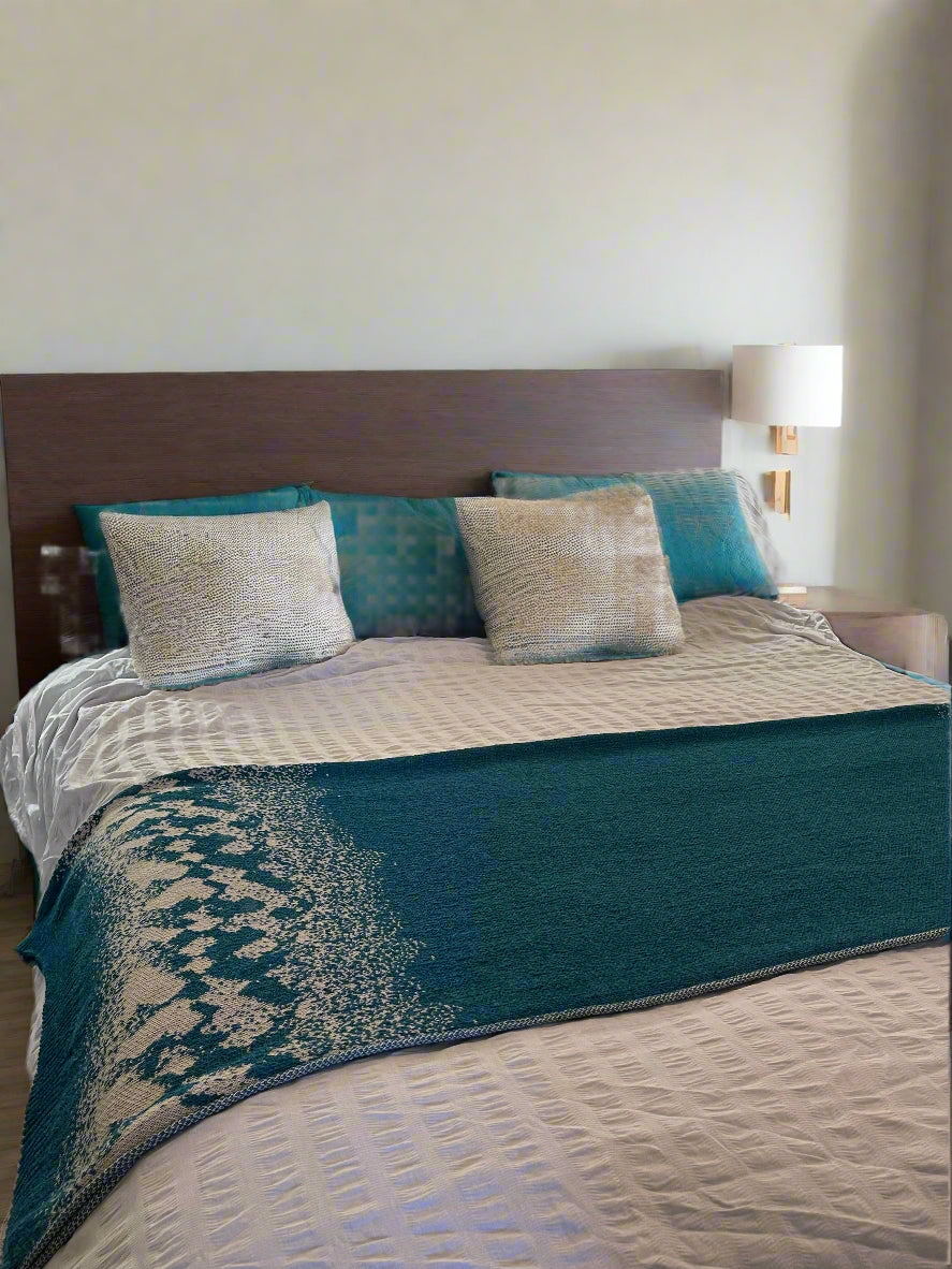 Australian Alpaca Blanket Alaska, Turquoise/Pearl