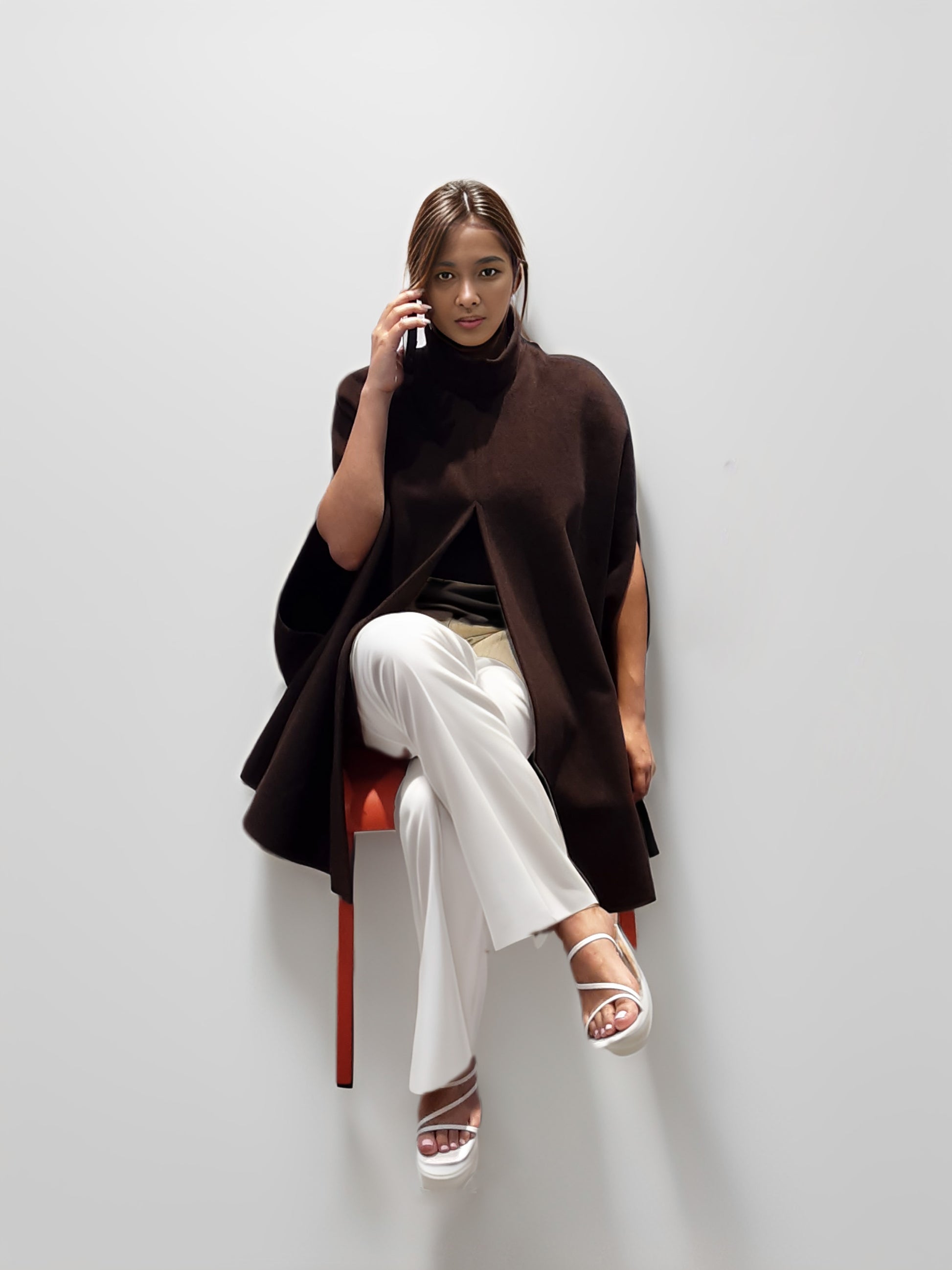 Alpaca Asymmetrical Poncho Diamond Chocolate