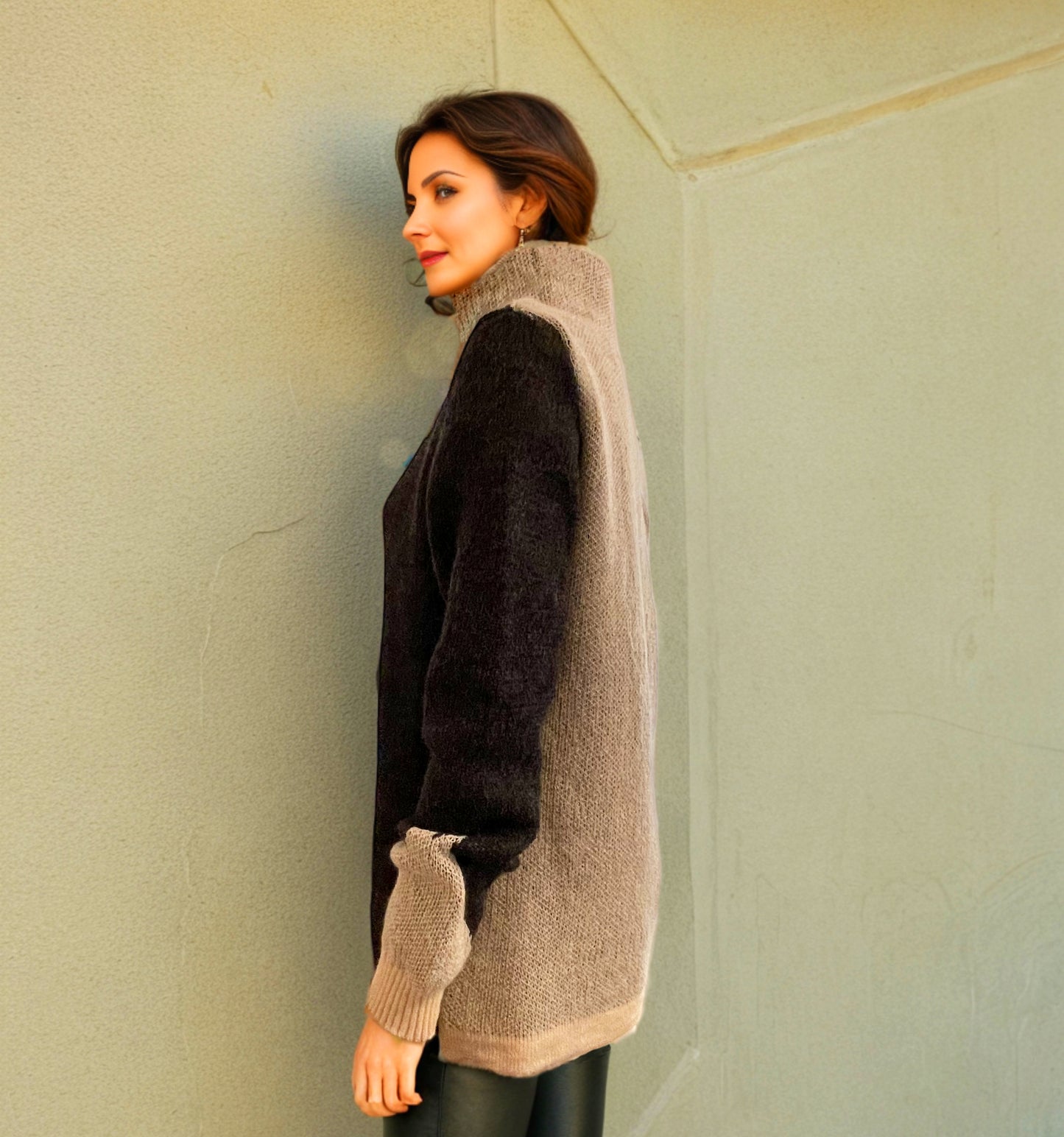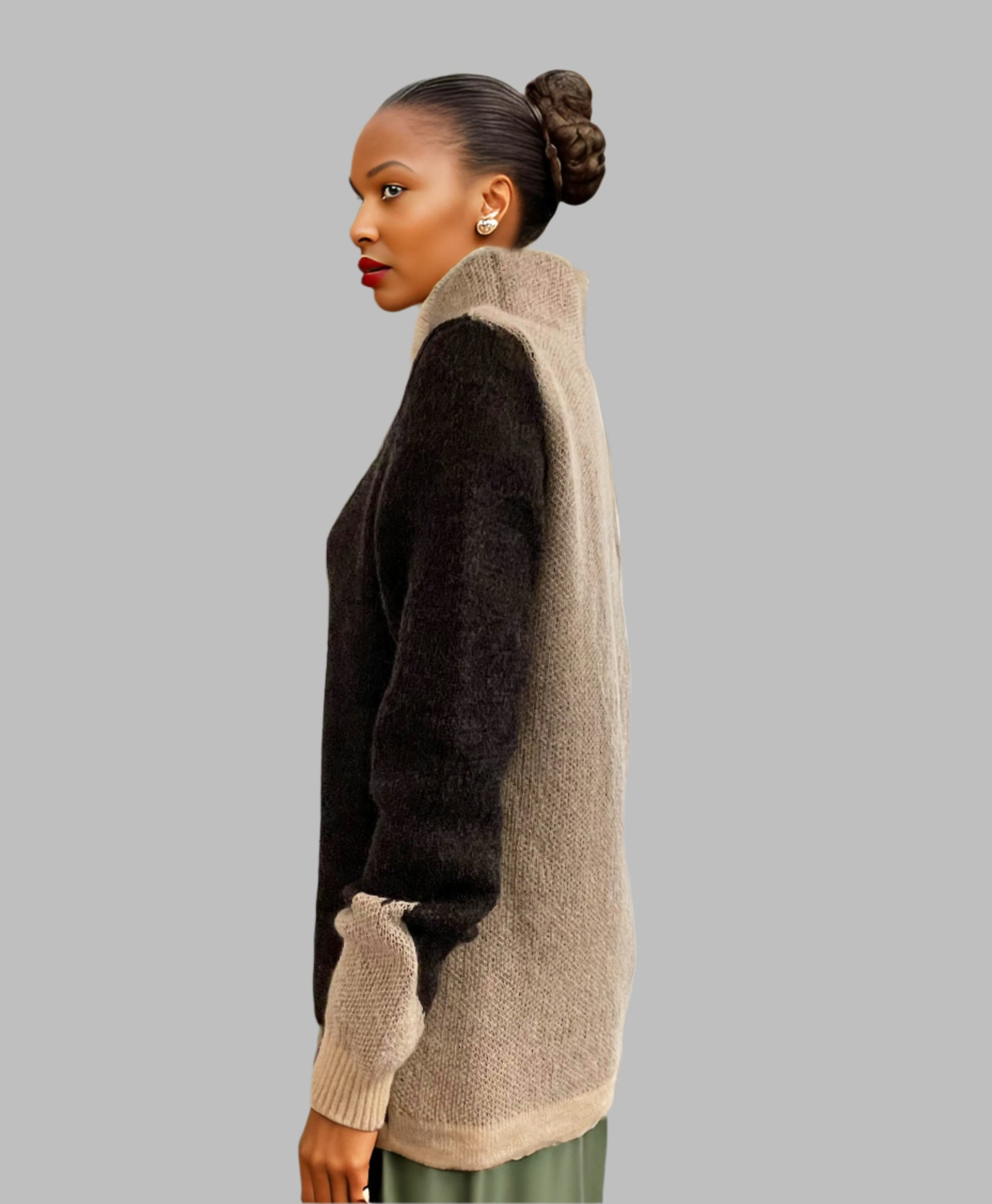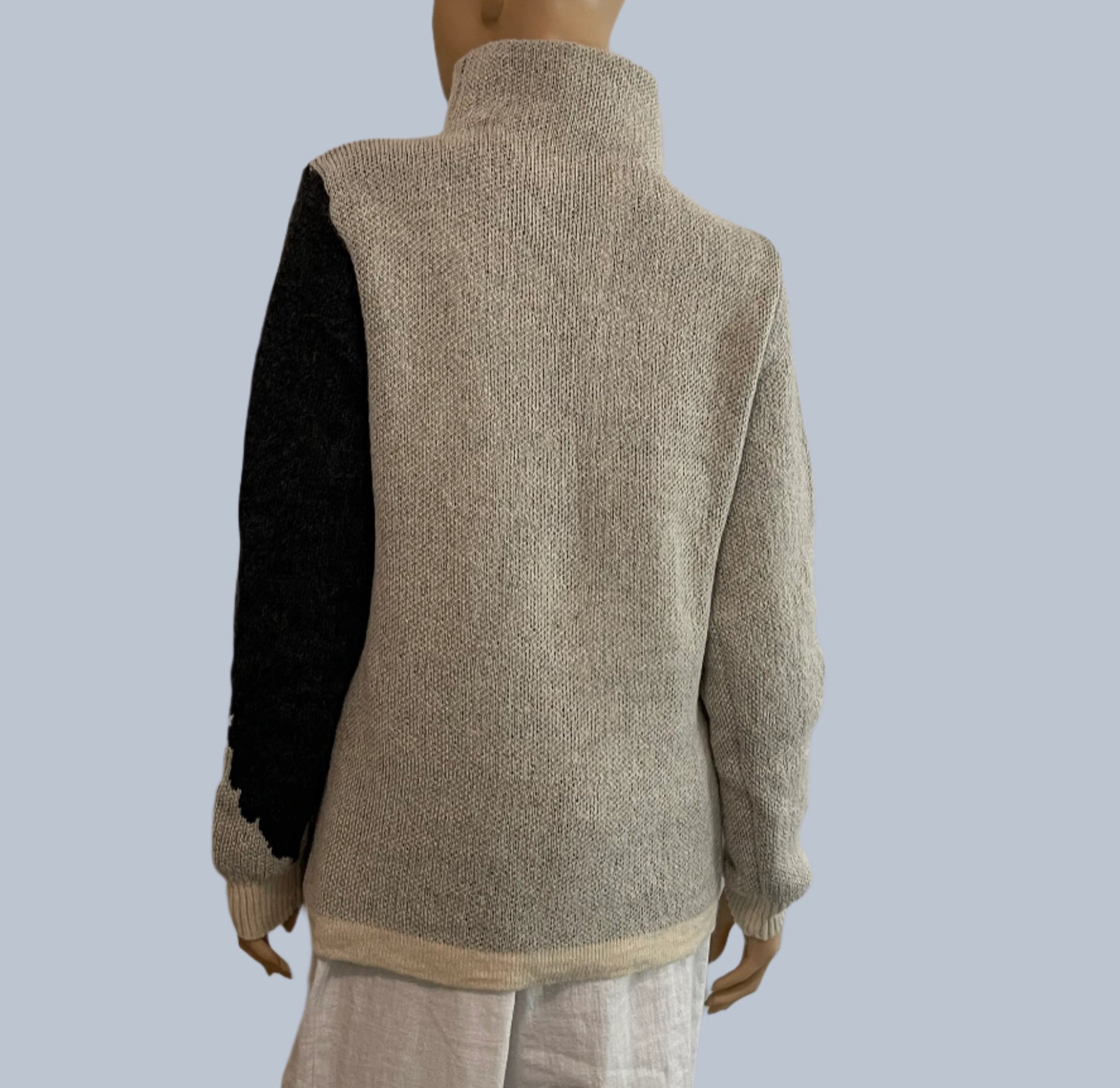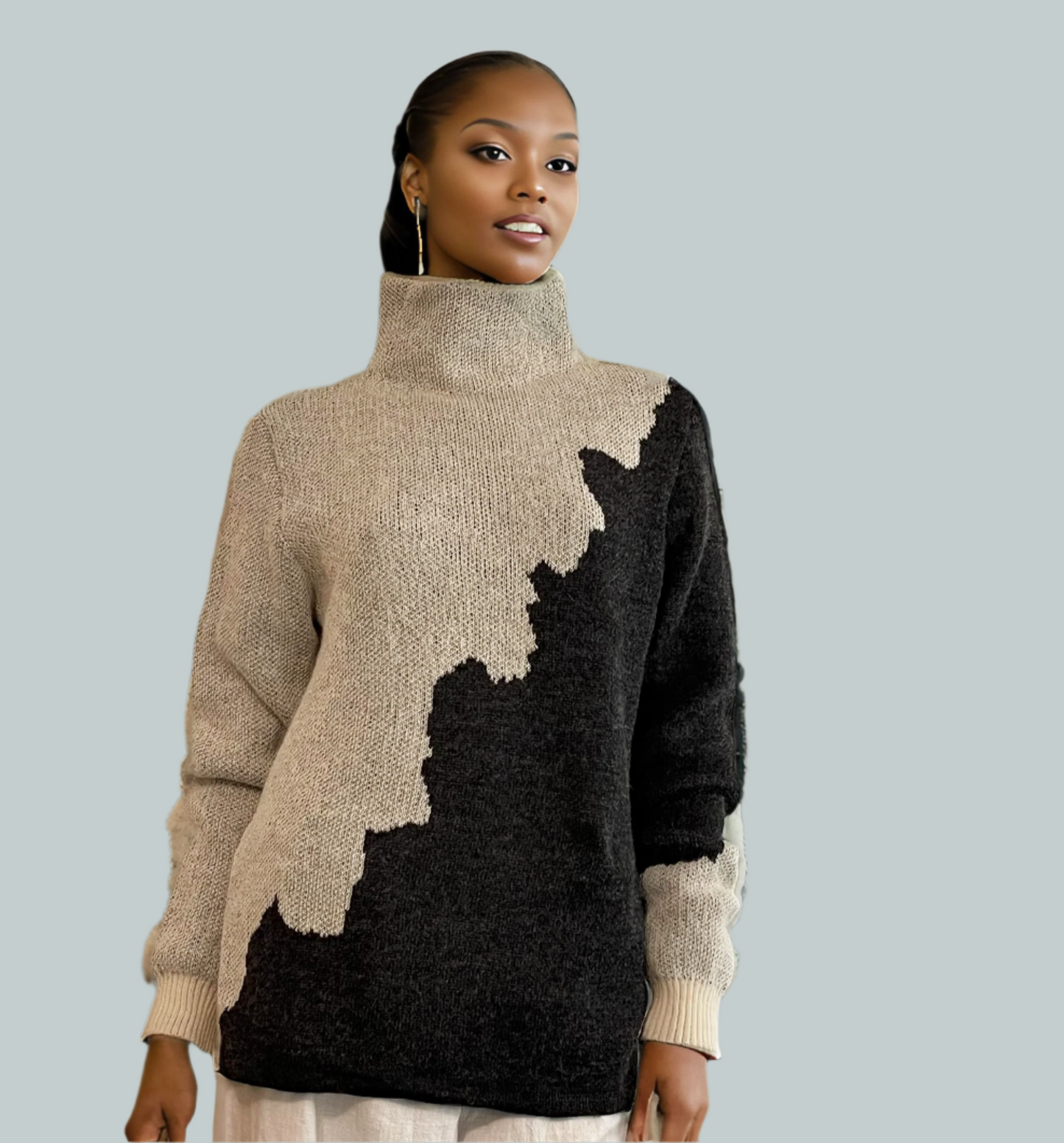 Alpaca High Neck Bi-color design Jacquard White/Charcoal