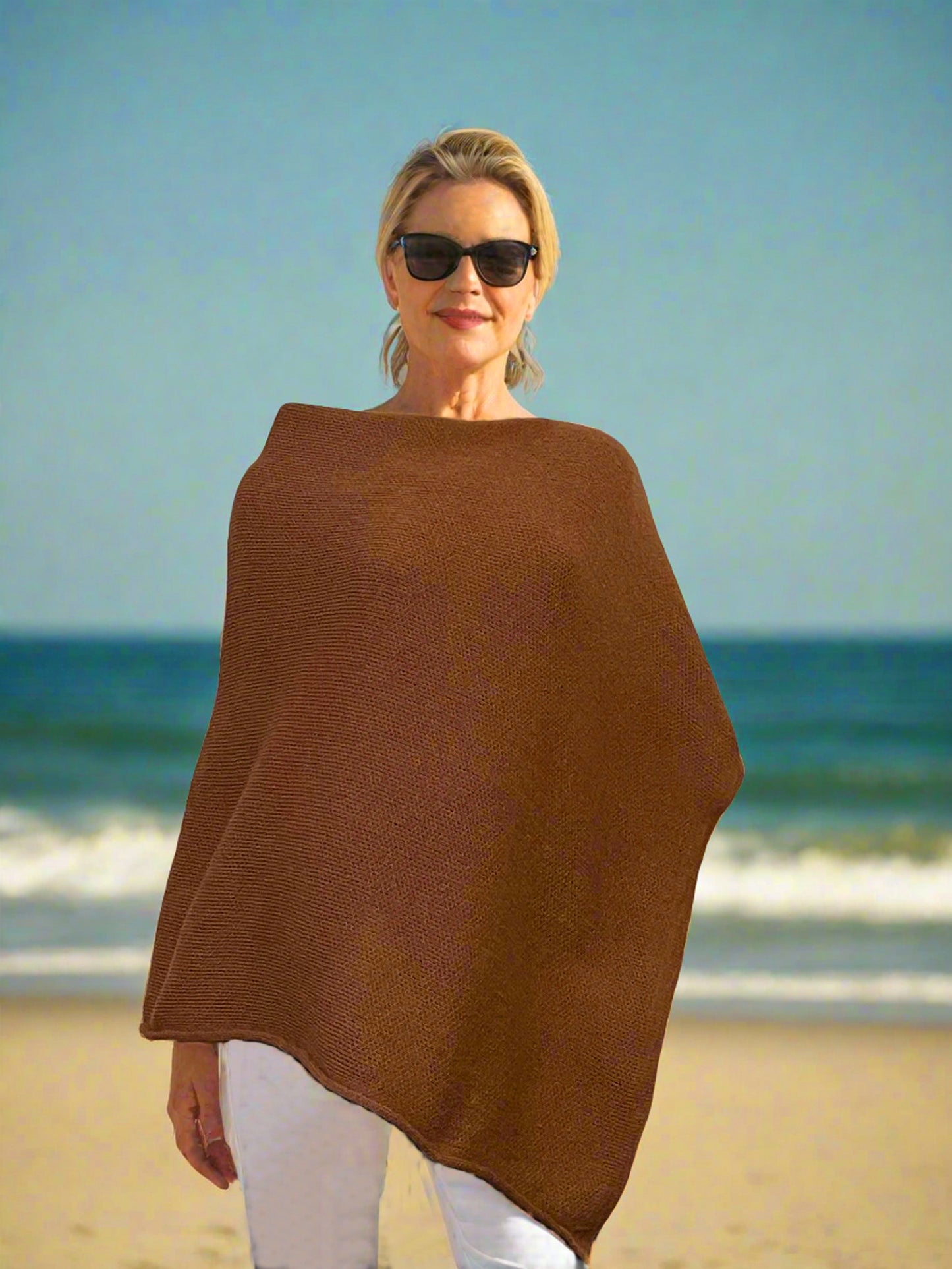 Australian Smooth Poncho is Great for Year-Round Wear for the Ultimate Fashionista. Baby Alpaca Natural wool in Mohair is soft and thick. It's cozy and warm. The generous size keeps you warm, a great alternative to a coat or jacket.