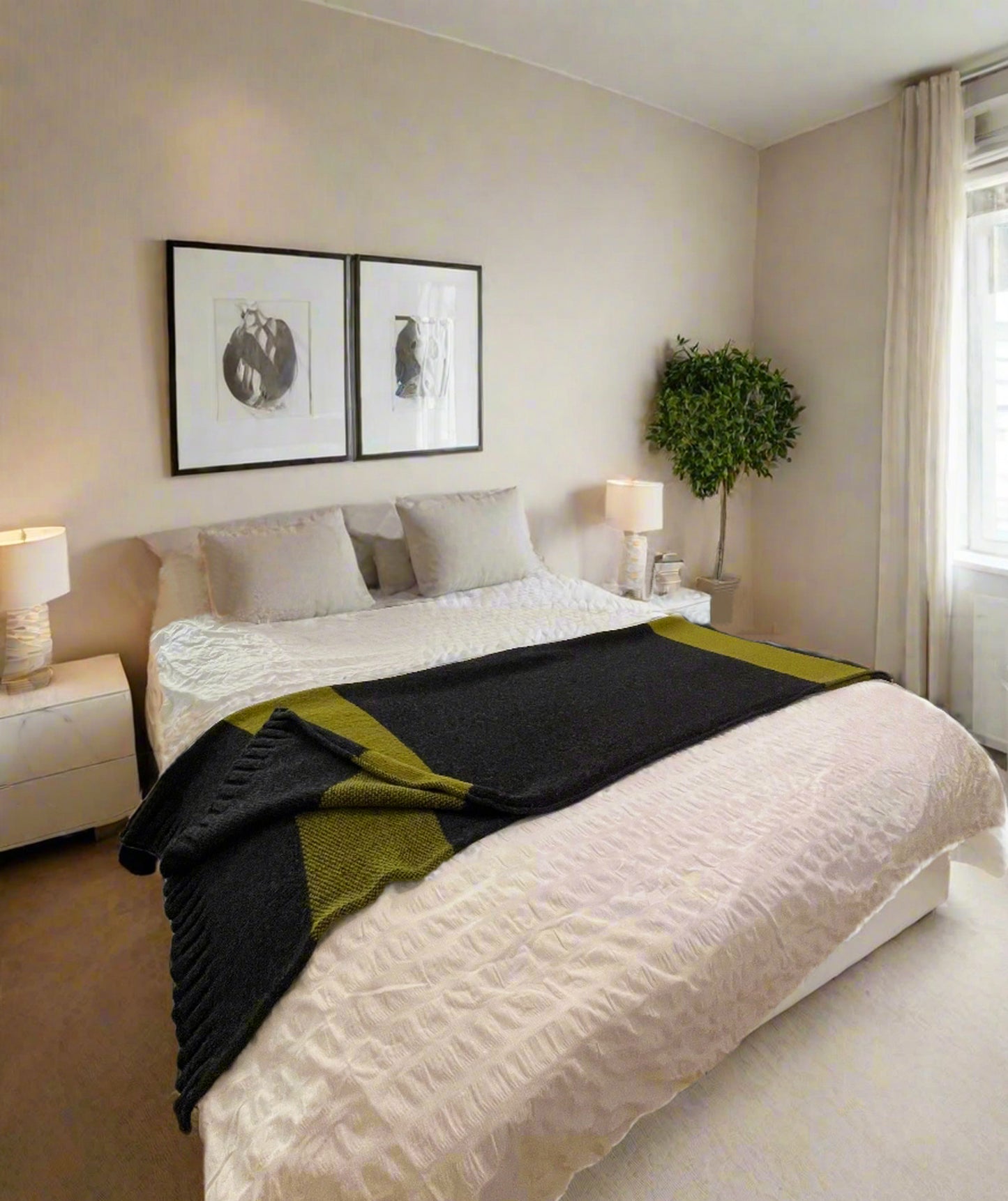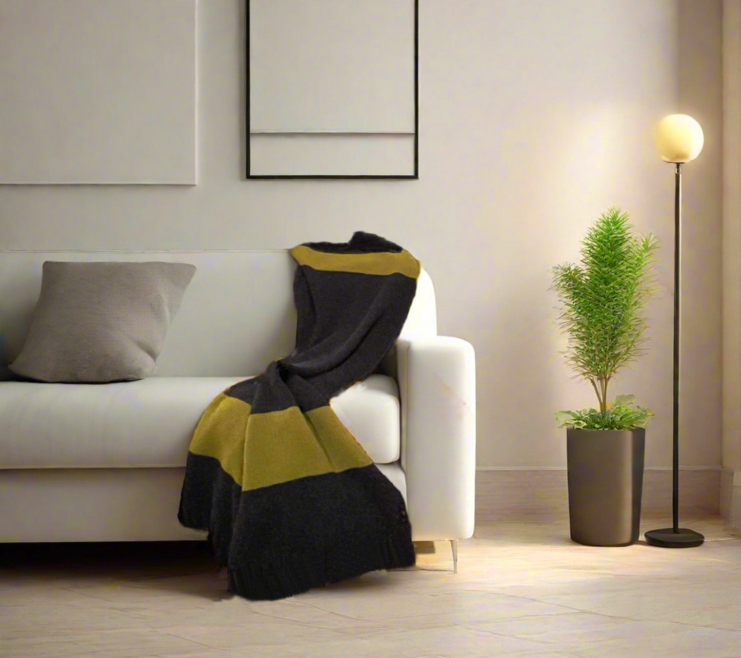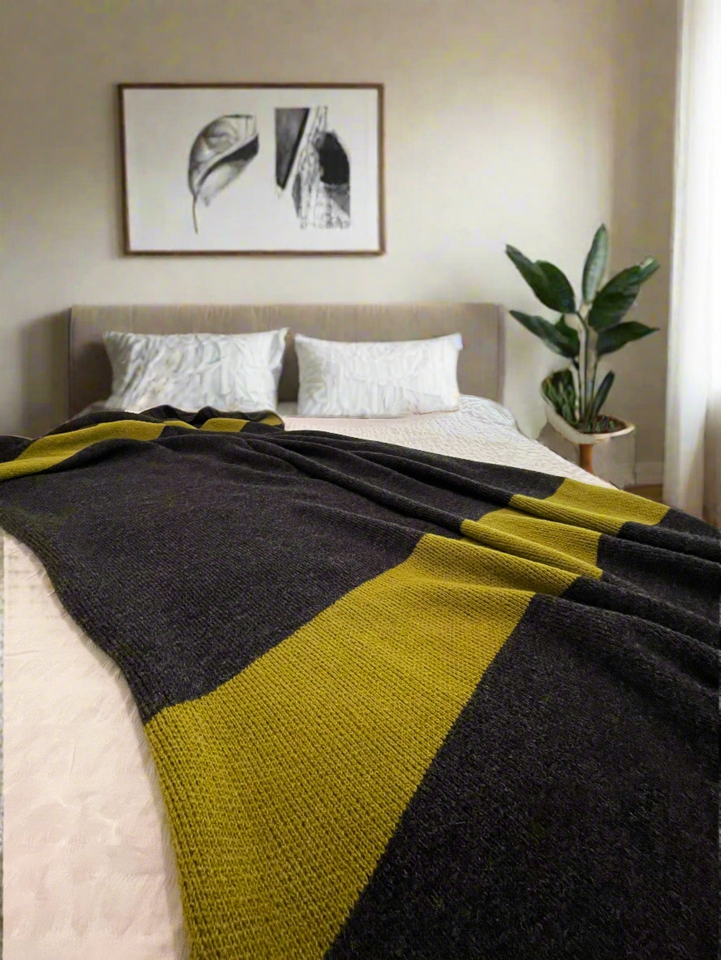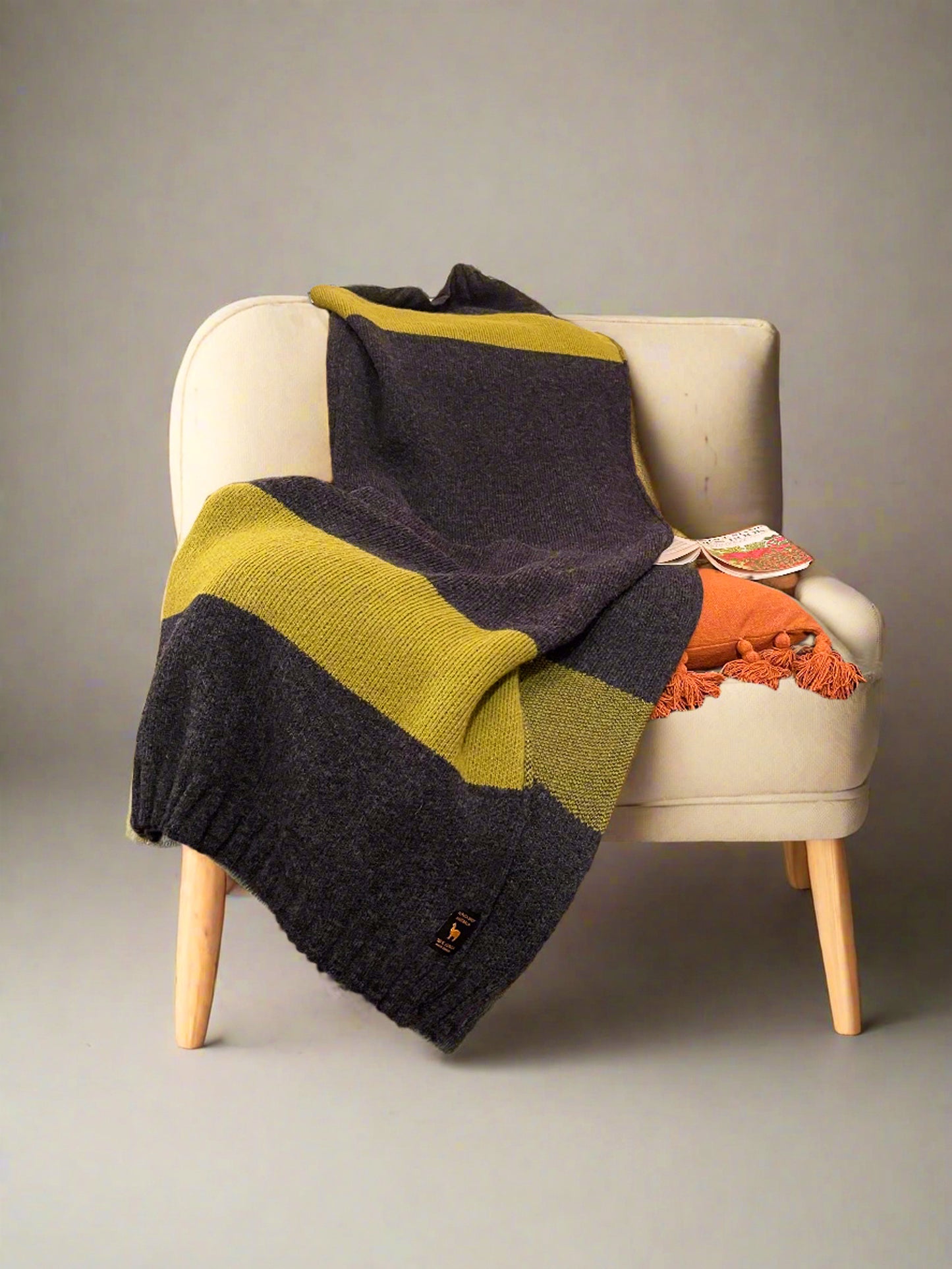 Luxury Mohair Alpaca Extra Soft Throw Blanket Charcoal-Lemon
