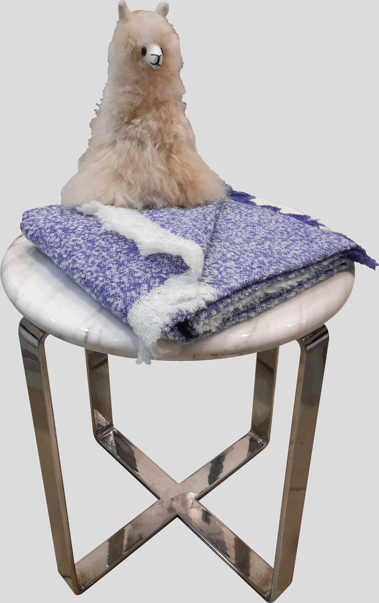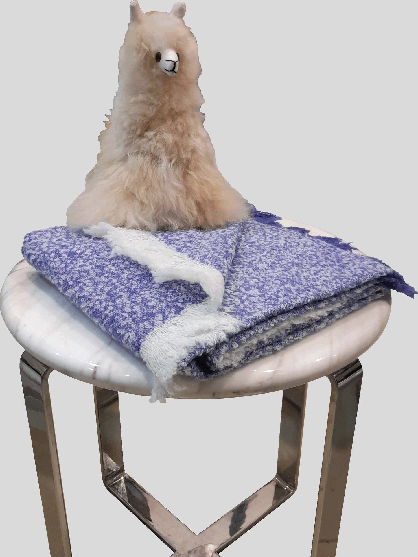 - The Material is 90% Superfine Caravely Baby Alpaca,10%Soft Polyamide. White Natural and Sky Blue Melange Colours.