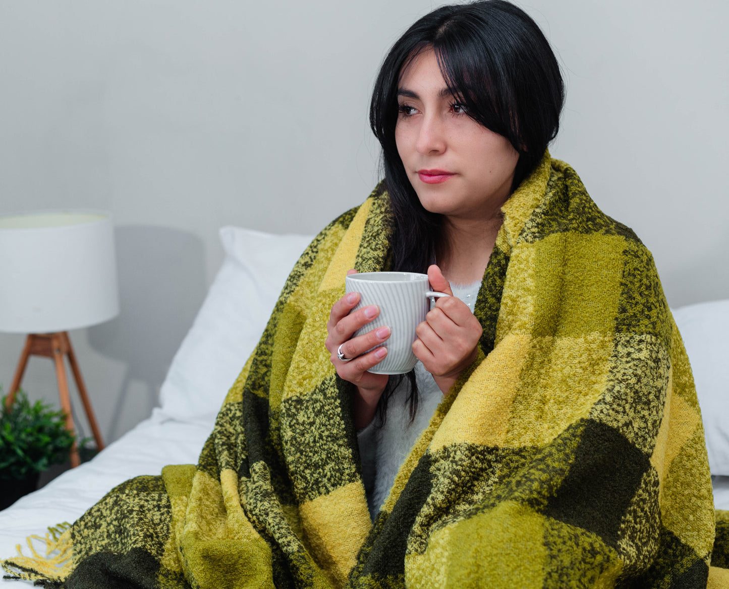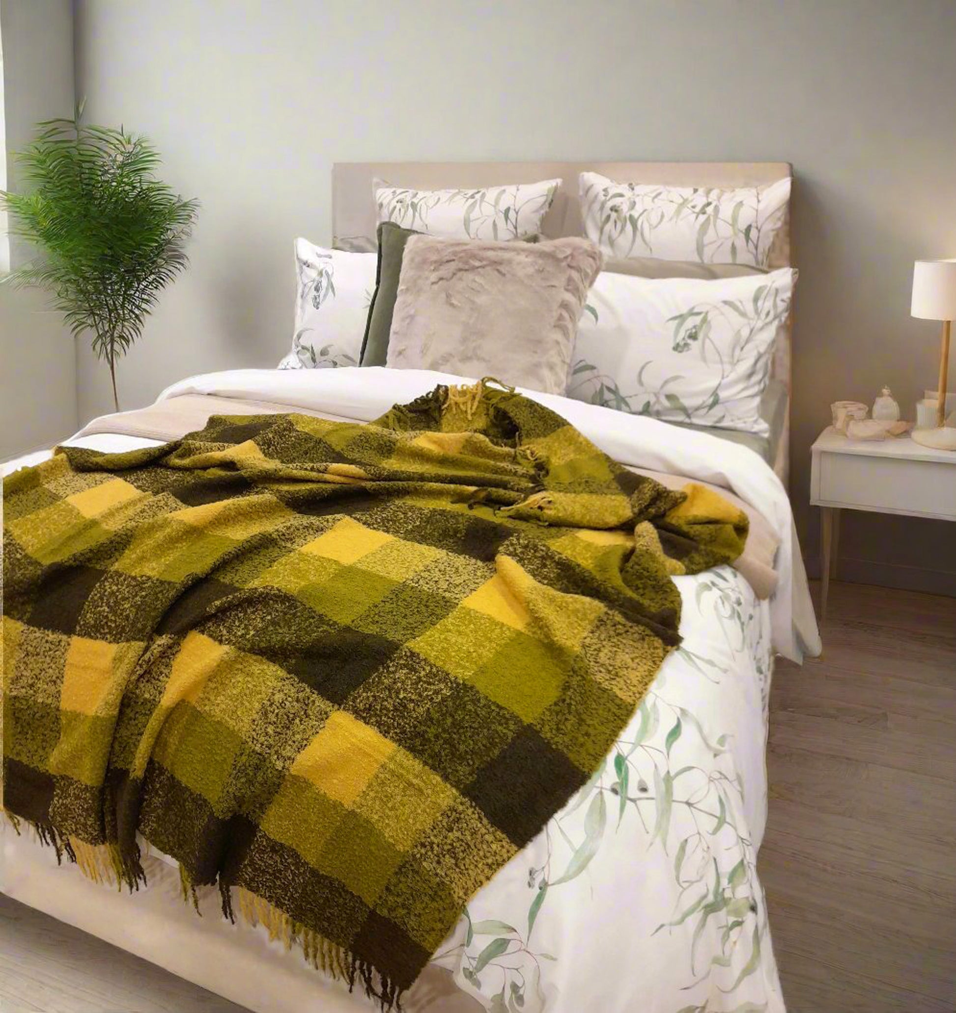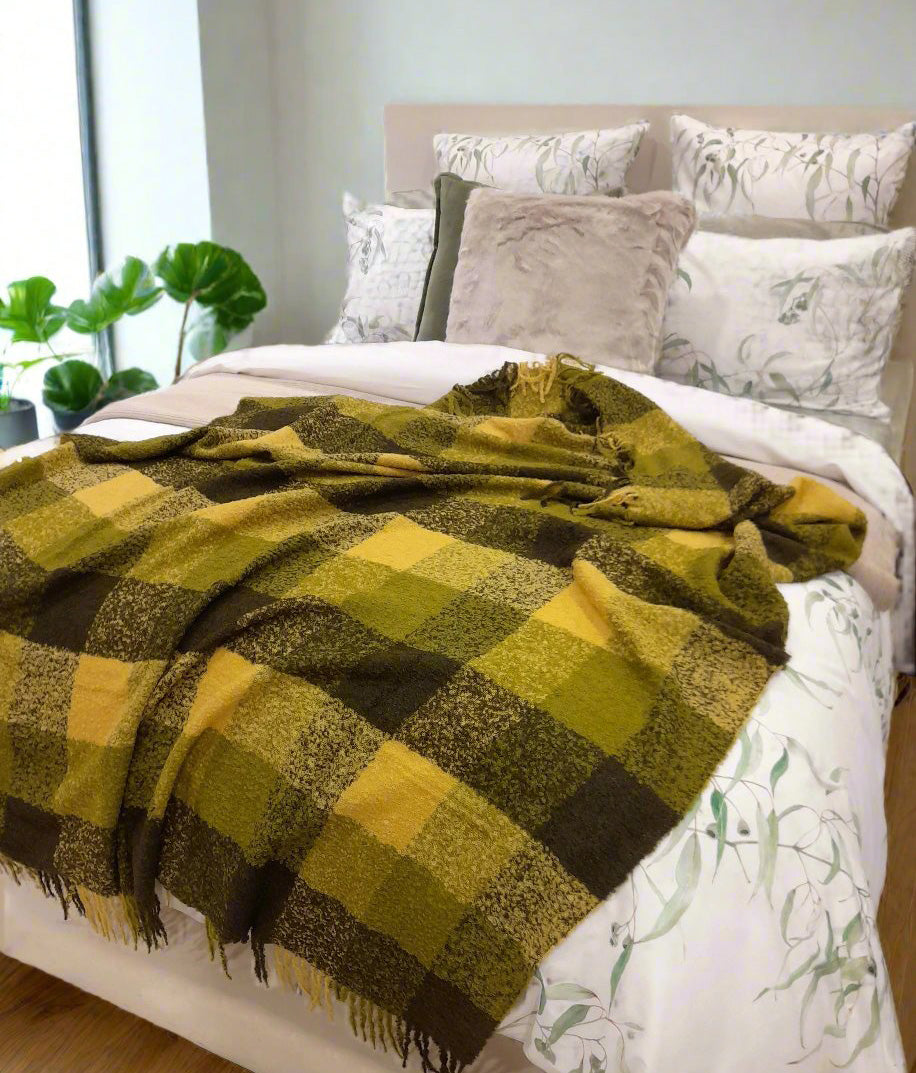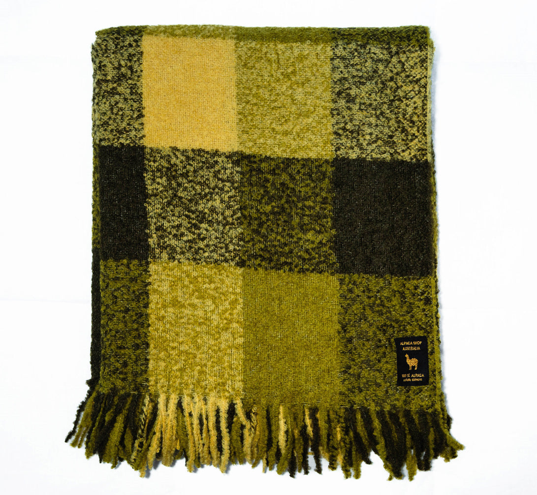 Luxury Alpaca Mohair Extra Soft Throw Blanket Green Tones