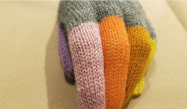 - 12 colors are used to knit these gloves.