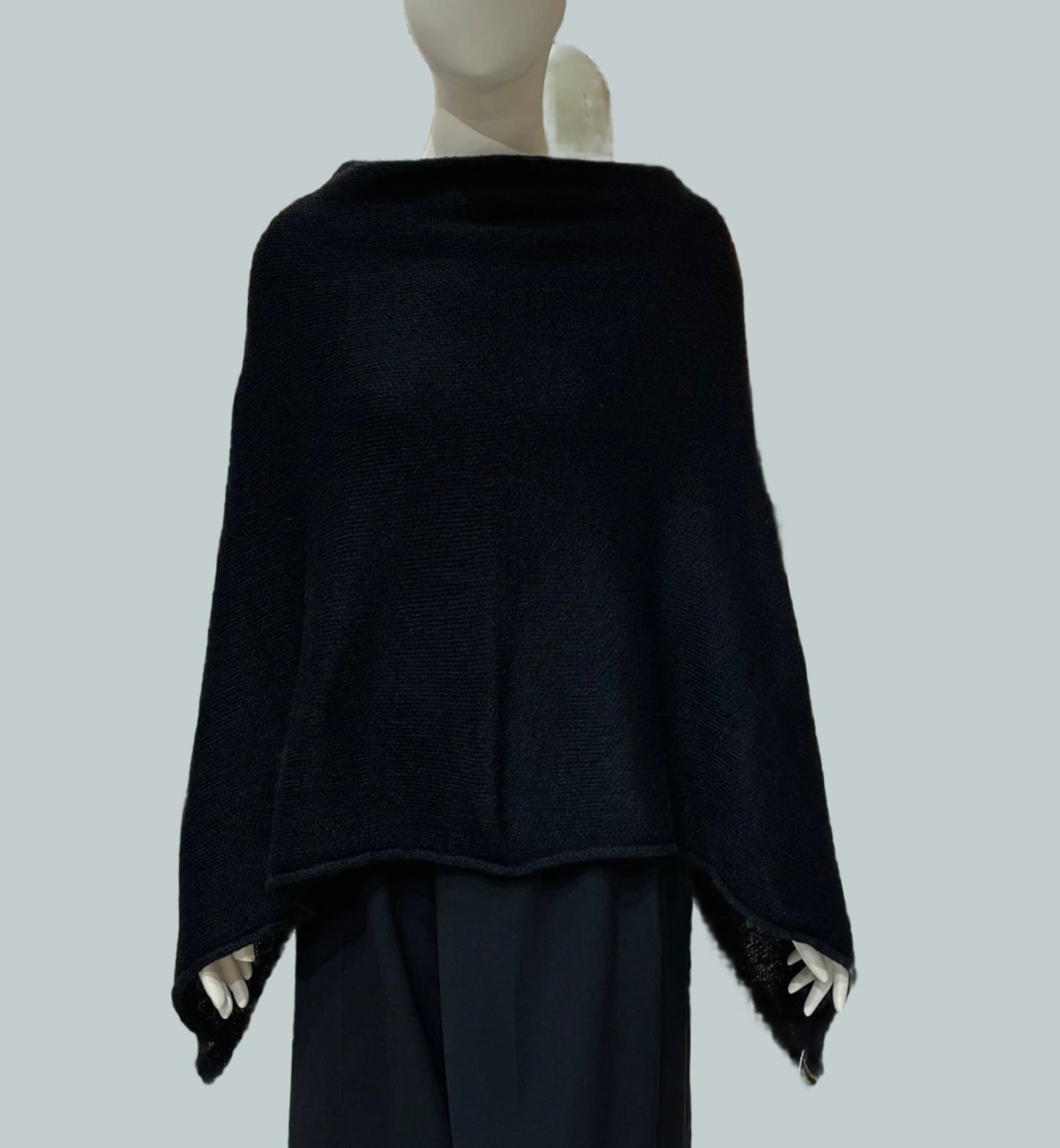 Alpaca Symmetrical Extra Smooth Poncho Black