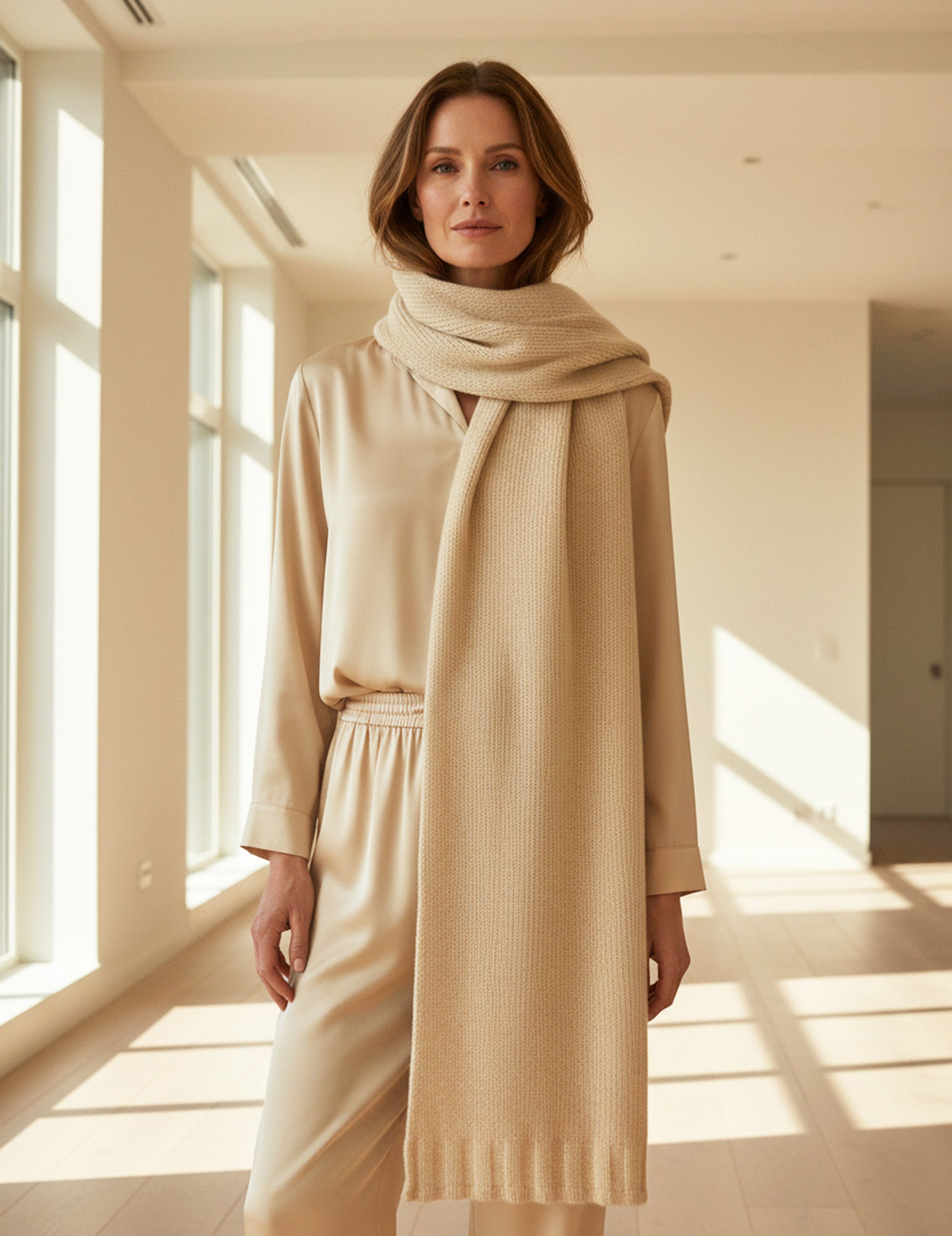 Alpaca Unisex Shawl-Scarf Extra Soft Natural Snow