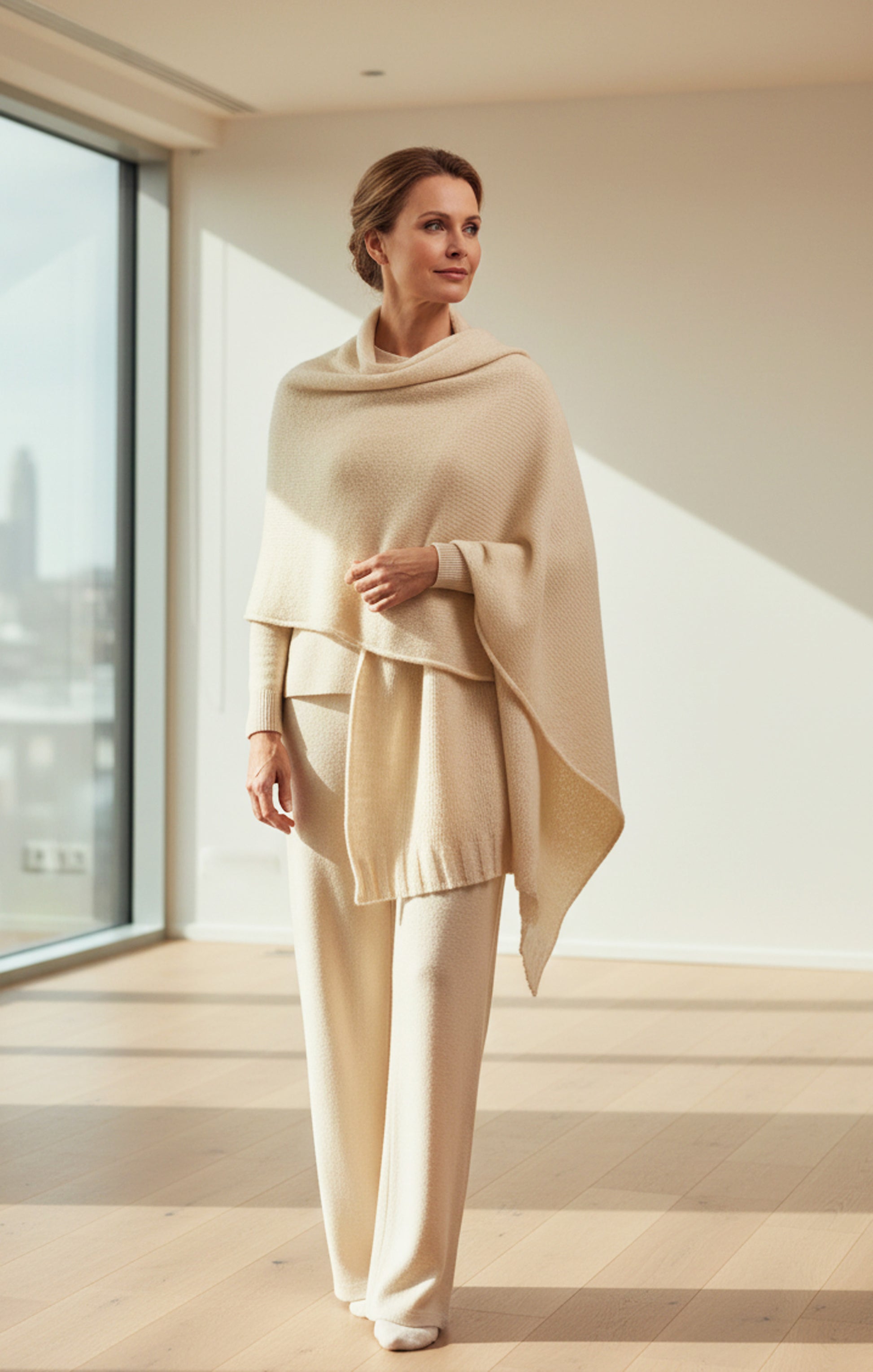 Alpaca Urban Shawl-Cape: Stay warm with this light-knit shawl double layer. Knitted in a Jacquard stitch pattern shawl, with classic style, perfectly keeps you warm all day long in cold weather. Super cozy. Extra soft and Super Light, Proudly Made in Adelaide. It can be worn as a scarf or a shawl covering your torso, keeping you warm