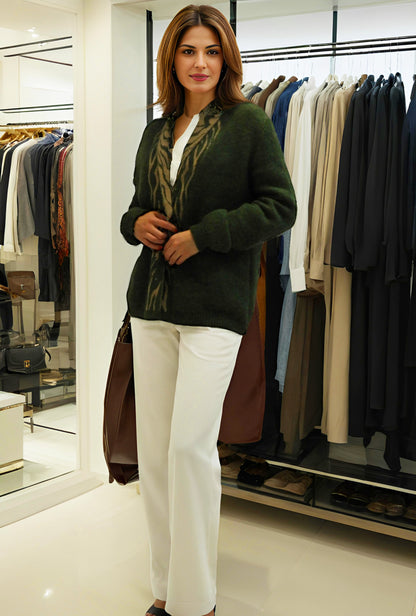 Alpaca Cardigan Zebra Pattern