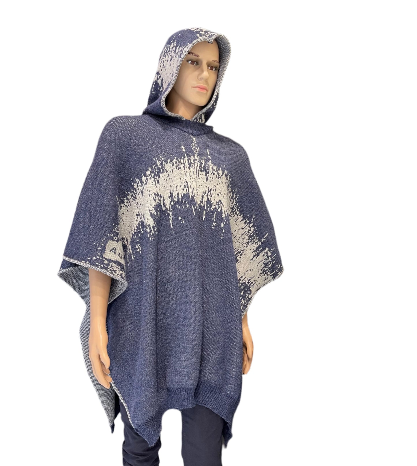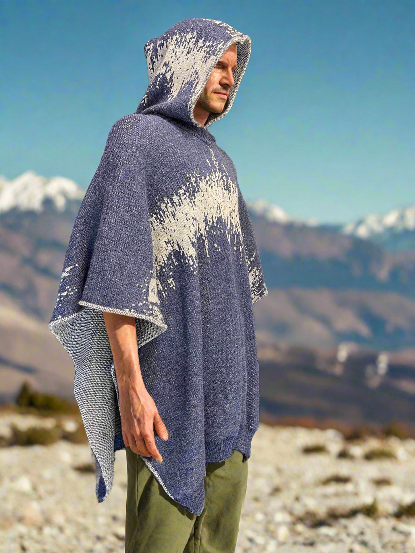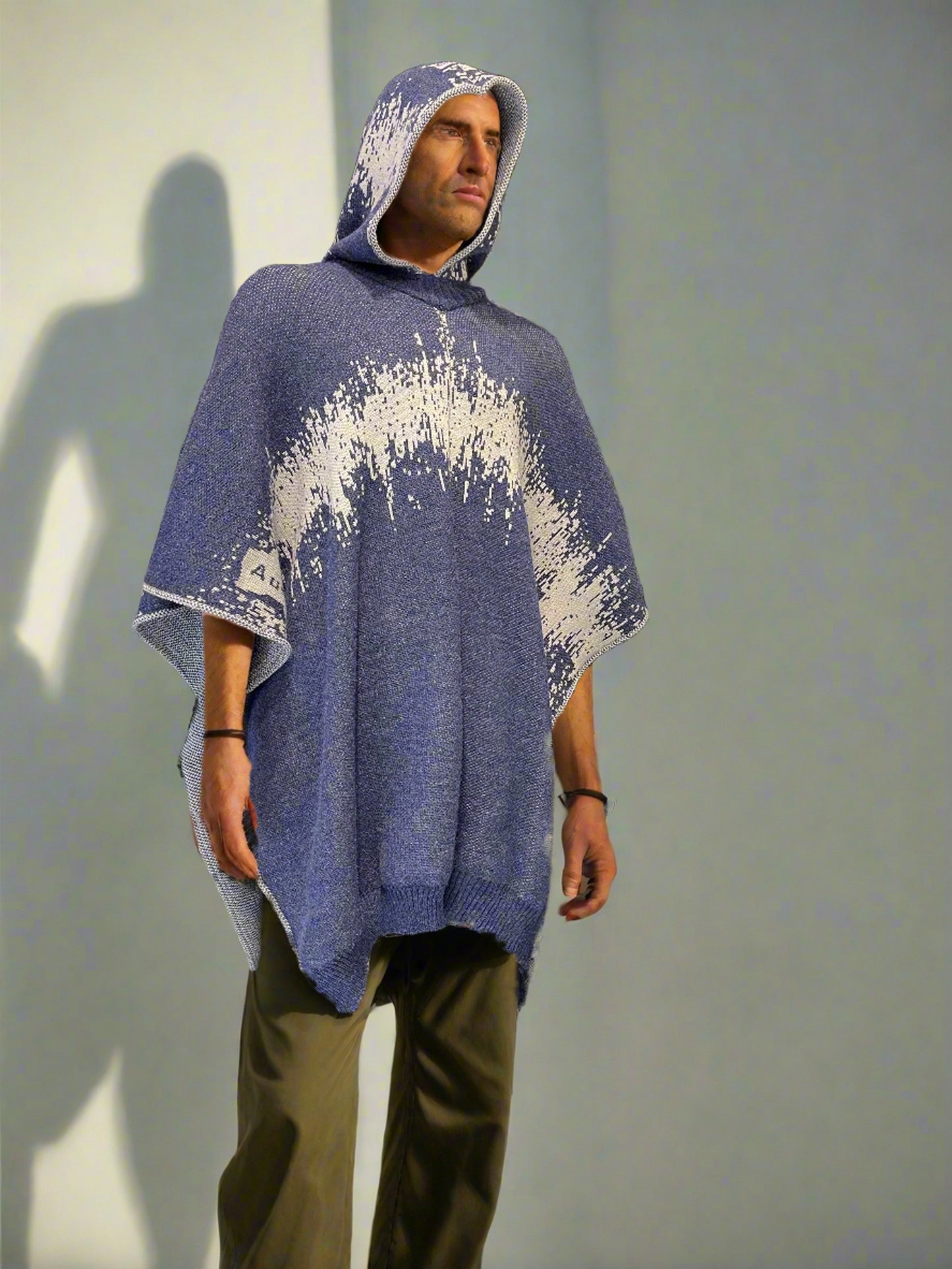 Australian Alpaca Thick Poncho Hooded, Disruption Blue