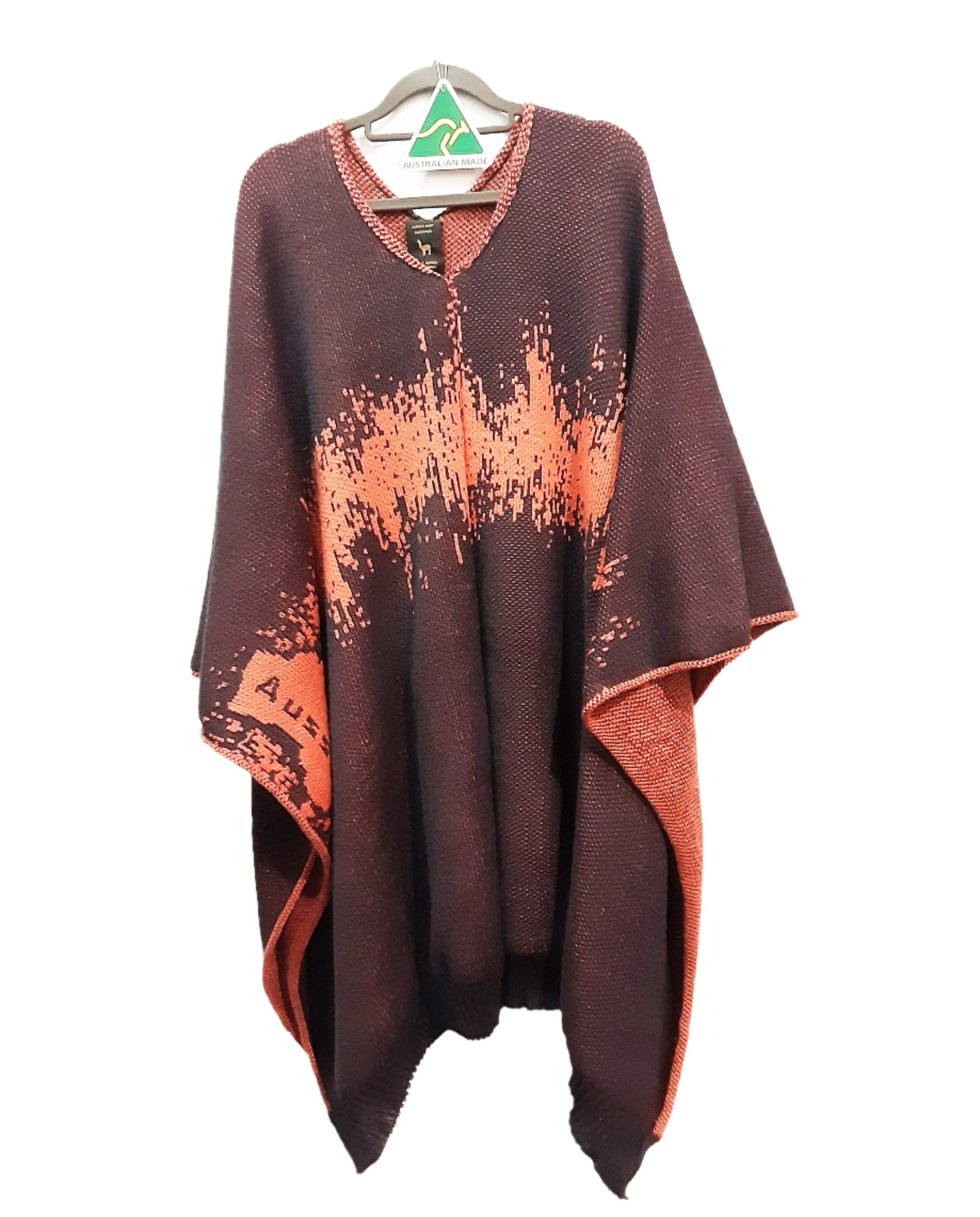 Australian Alpaca Thick Poncho, Disruption V-Neck Charcoal