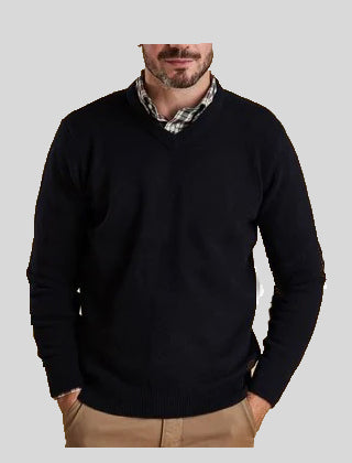 It is the perfect solution. Such an essential sweater is perfect for everyday wear; we've designed ours with a neckline that will look great paired with your favorite shirt. In a variety of basic colors, like navy blue, black, and grey mélange, we think your wardrobe is incomplete without it
