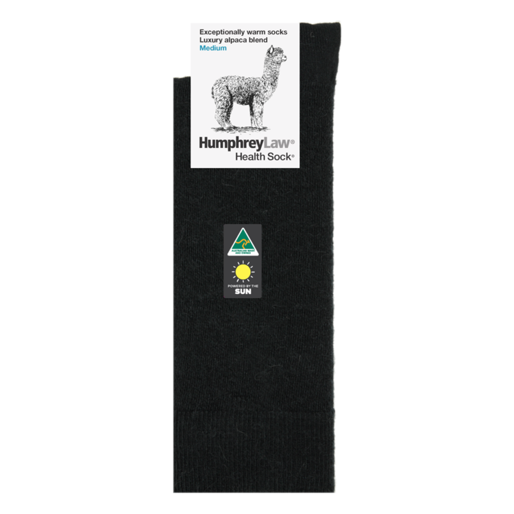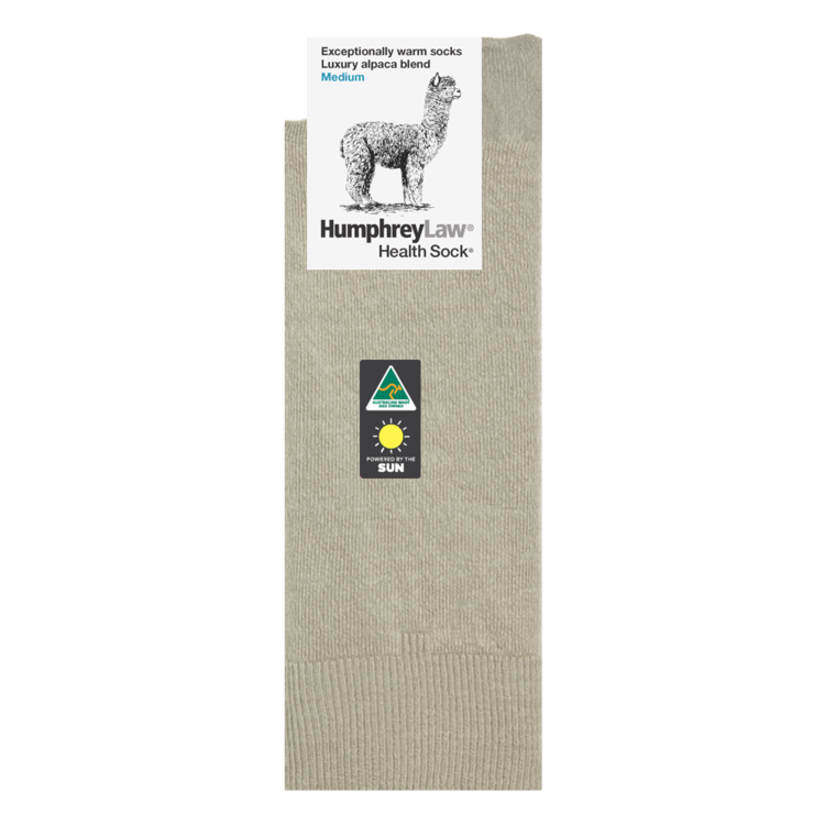 This truly luxurious sock is made with baby alpaca yarn with some nylon reinforcement to provide longer wear. Baby Alpaca yarn is soft, supple, and smooth containing microscopic air pockets that are perfect for retaining feet warmth. This sock is not recommended for high abrasion use such as in work boots. A Health Sock® with no tight elastic top.