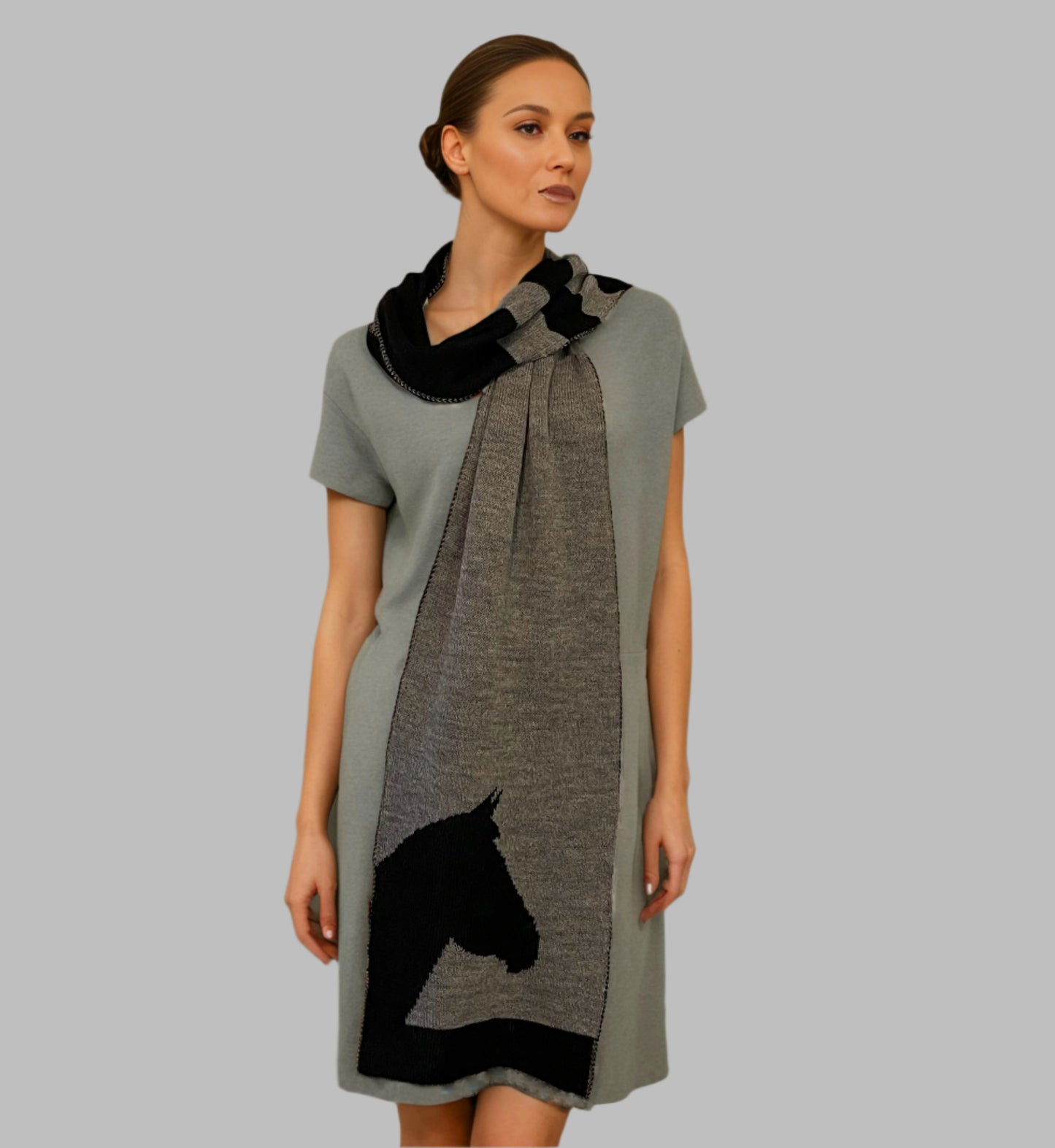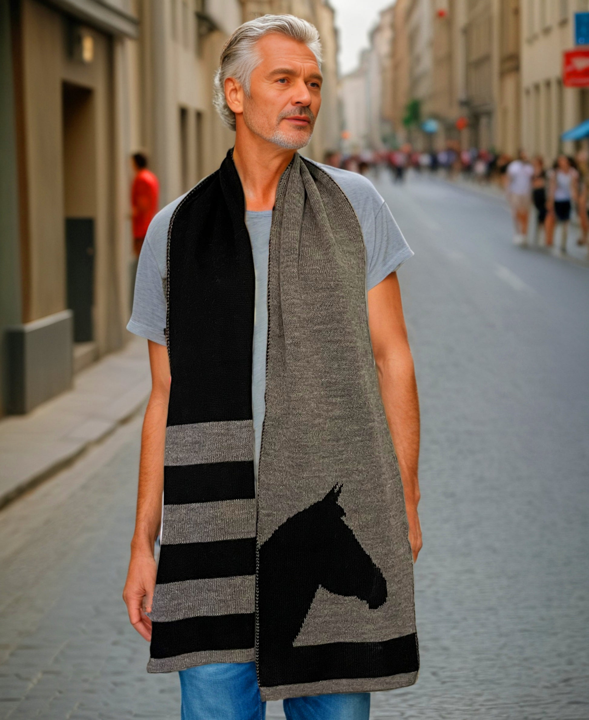 Unisex Alpaca Scarf Brumby Horse Design Gray