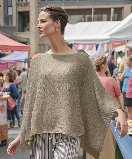 Alpaca Light Knit Poncho Rice Grain