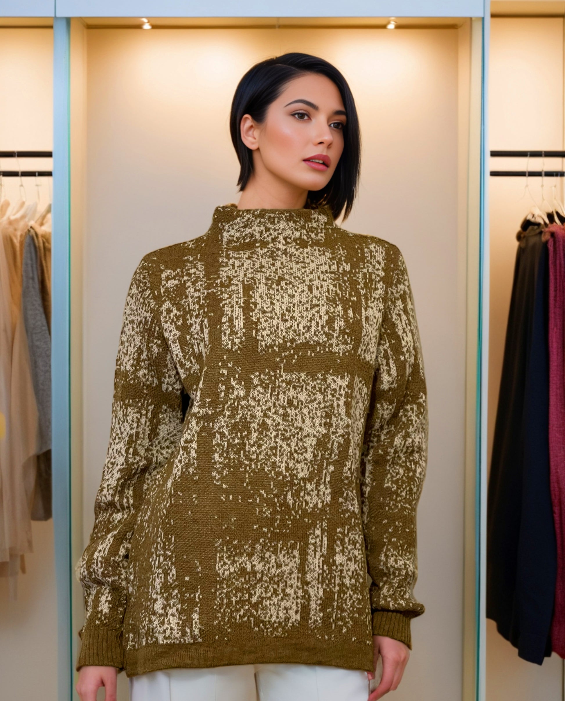 Alpaca Women’s High Neck Gold Granite Jacquard Mustard