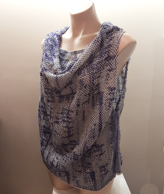 Loose Knit Top Reversible Neckline Blue/White
