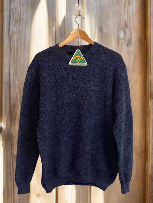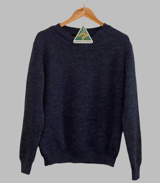 Alpaca Classic Jacquard Sweater Men V-Neck Blue