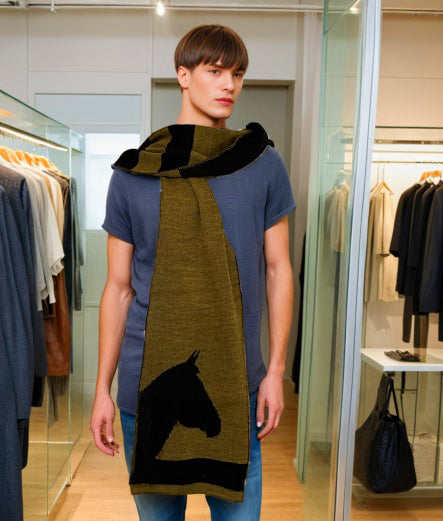 Unisex Alpaca Scarf Brumby Horse Design Mustard