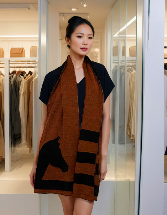 Unisex Alpaca Scarf Brumby Horse Design Terracotta