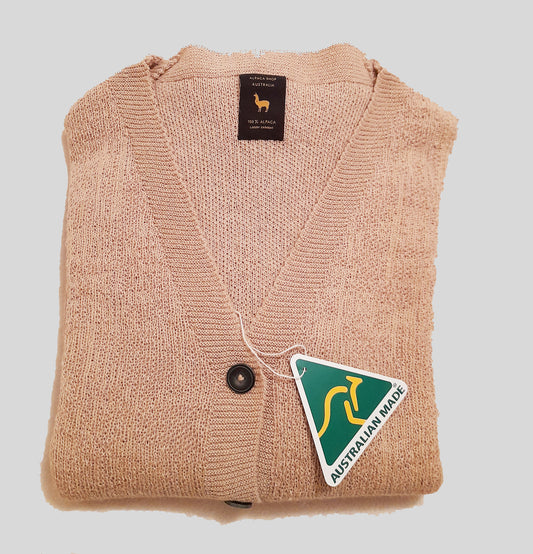 Alpaca Cardigan V-neckline Jacquard Pattern Beige