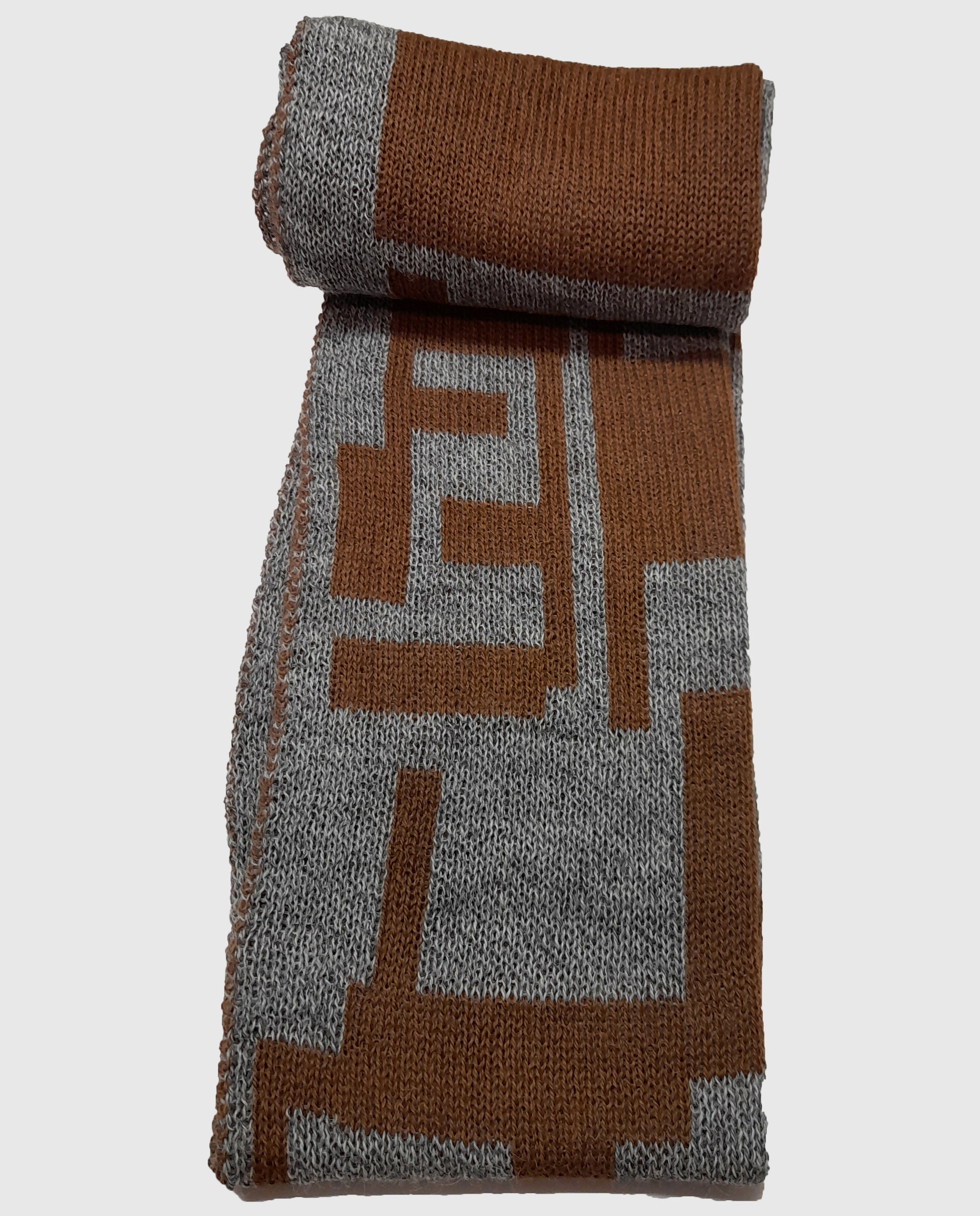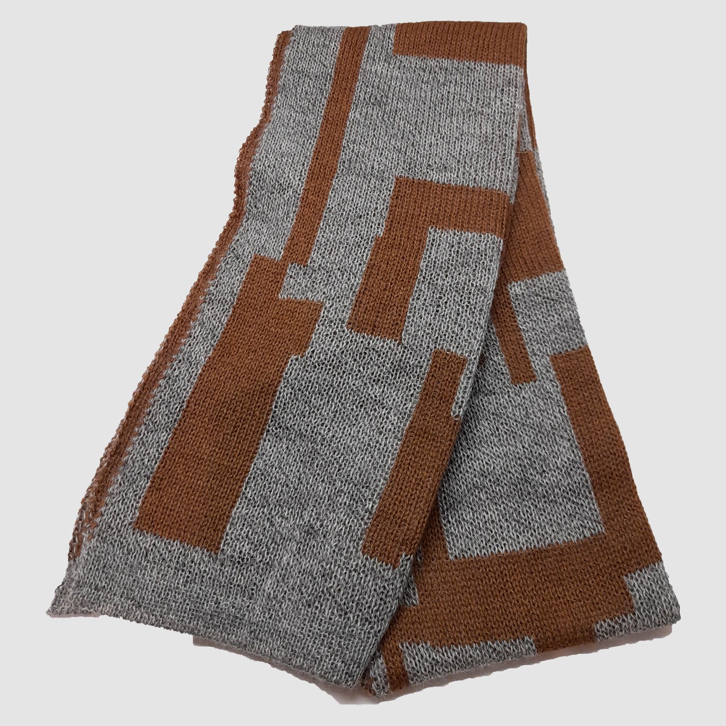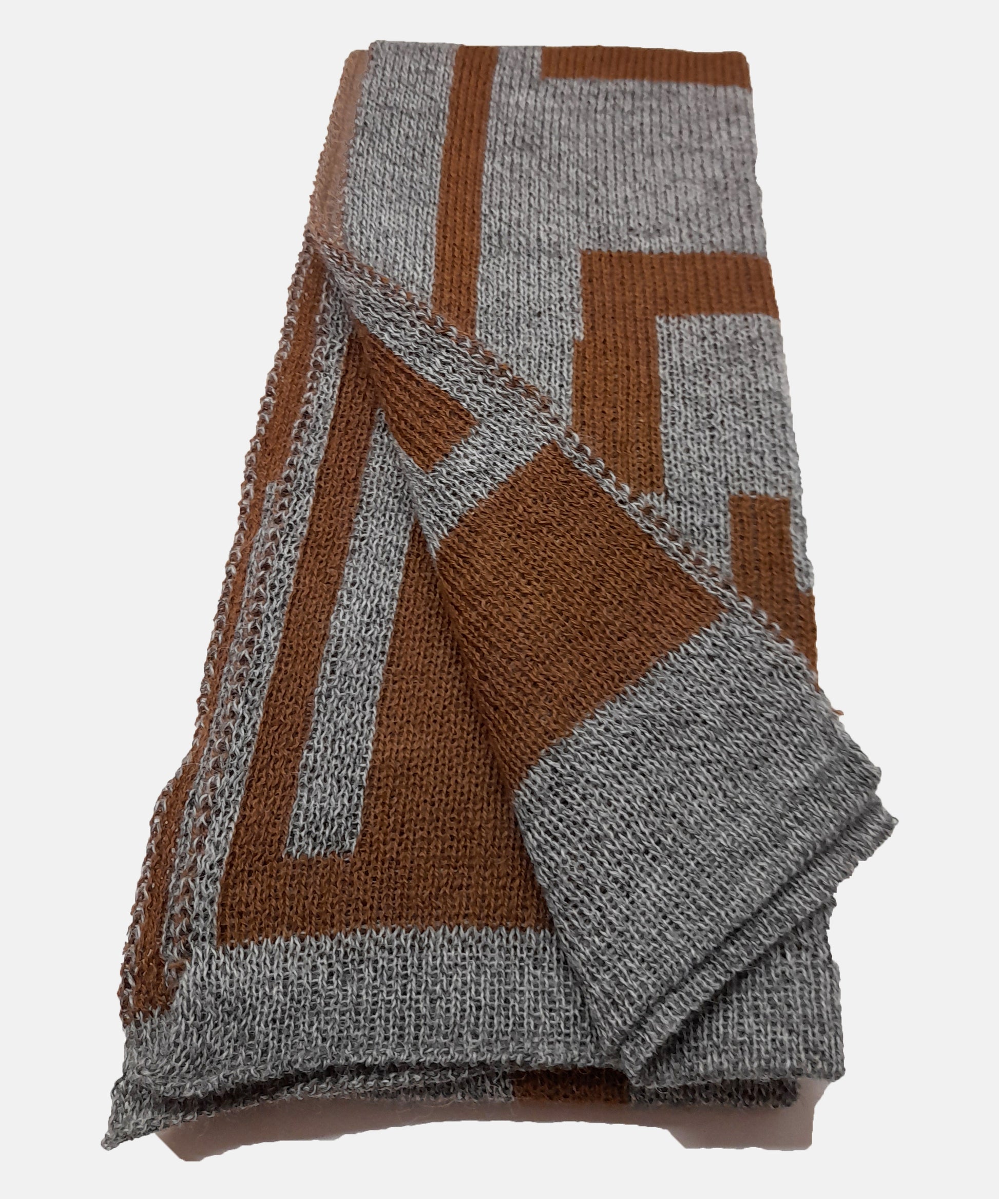 Alpaca Unisex Scarf Labyrinth Design Camel/gray