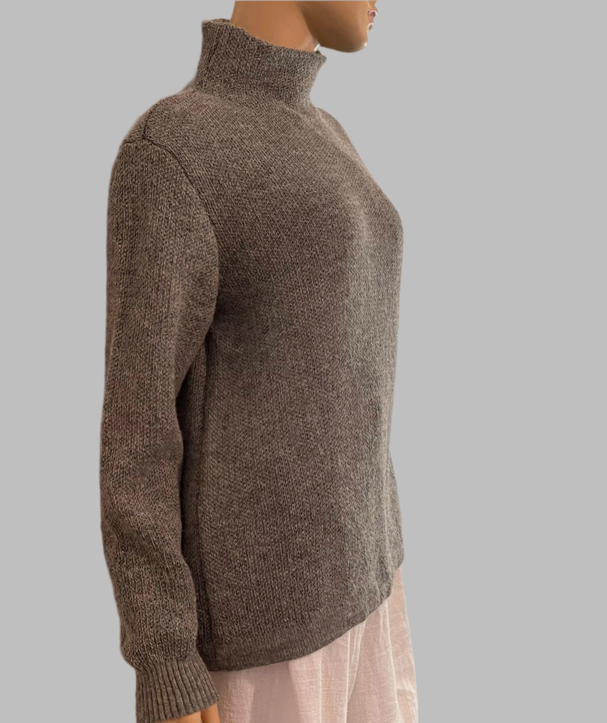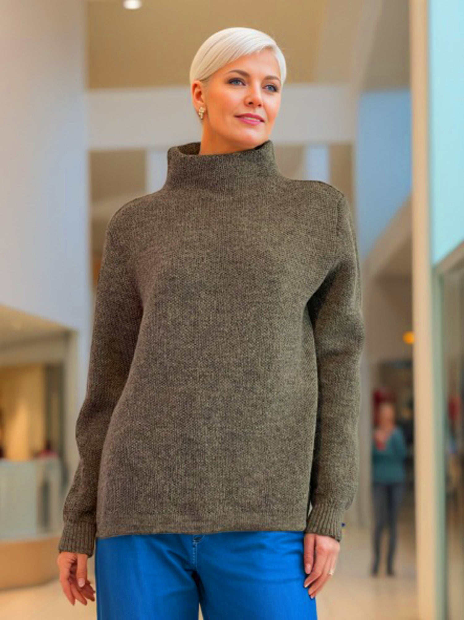 Alpaca Women’s High Neck Jacquard Knit Natural Gray